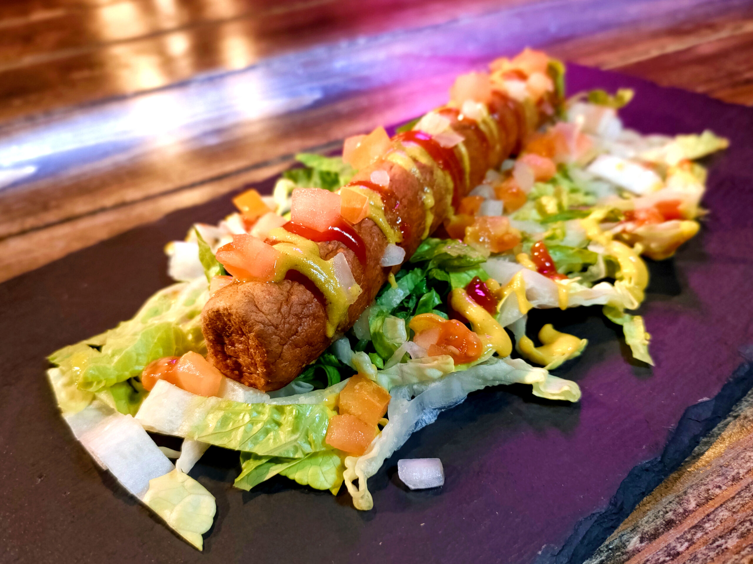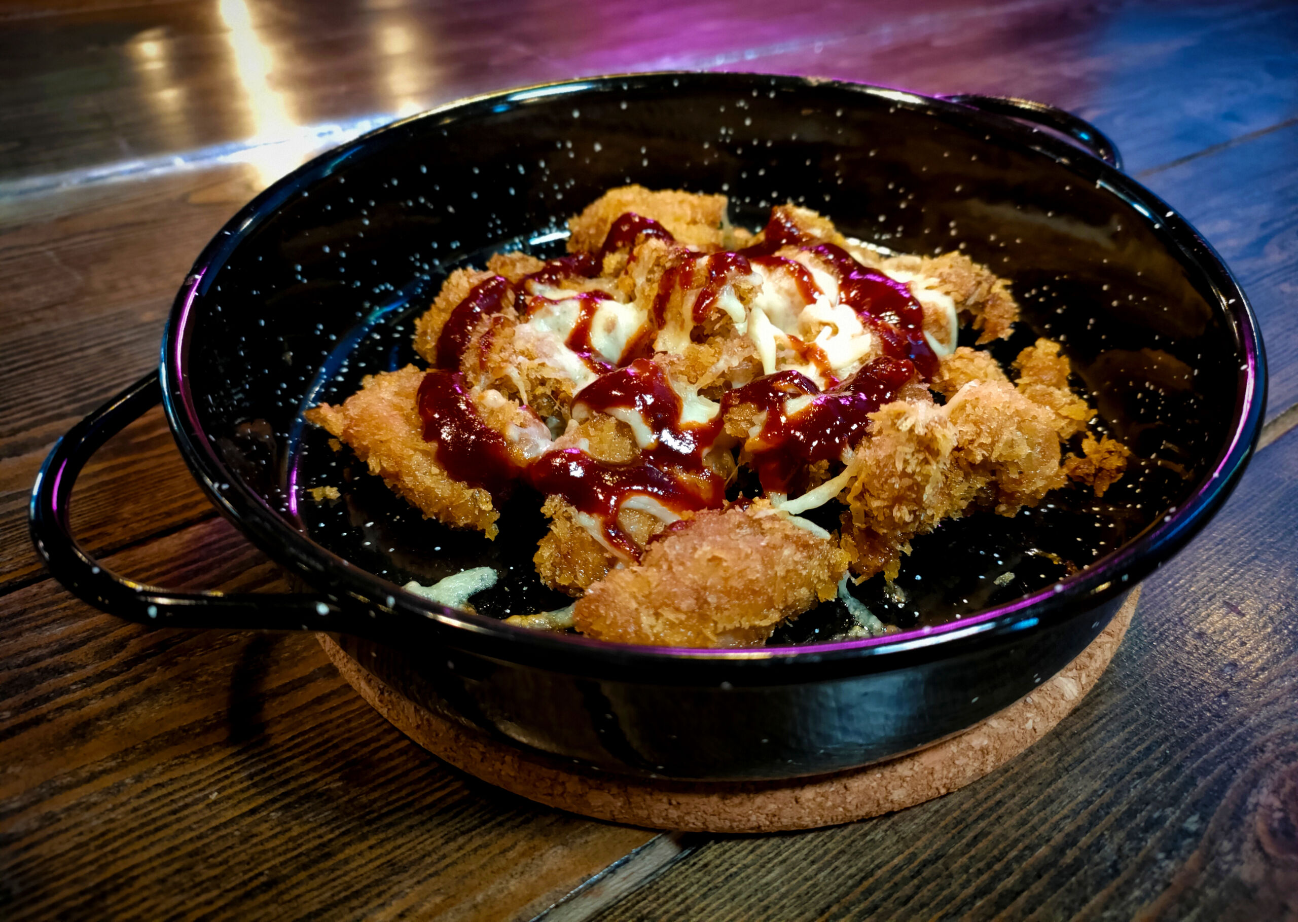 Ingredients: Pollastre arrebossat, salsa coreana Gochujang i mozzarella.