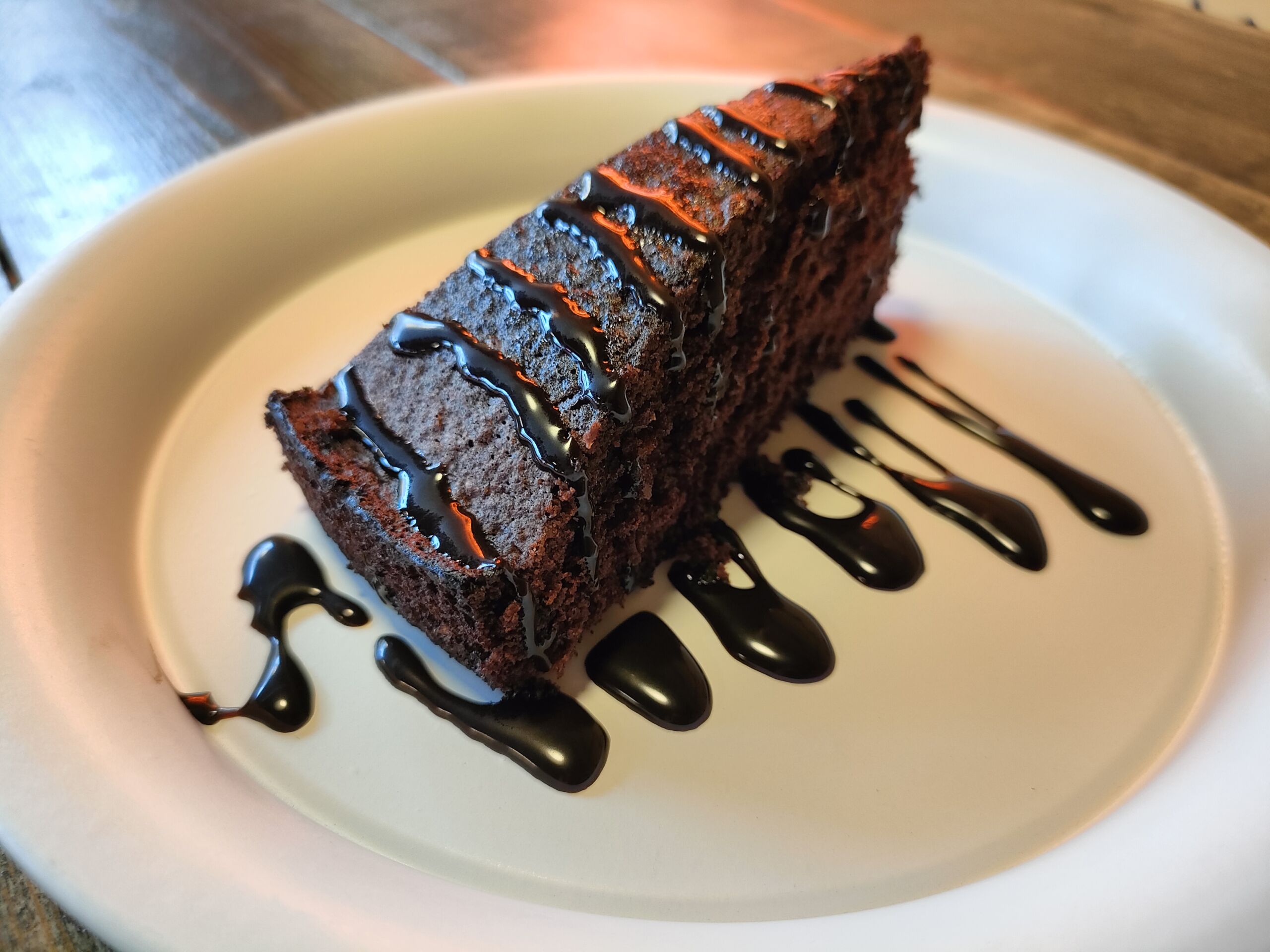 de xocolata i una de vainilla adornat amb sirope de xocolata.